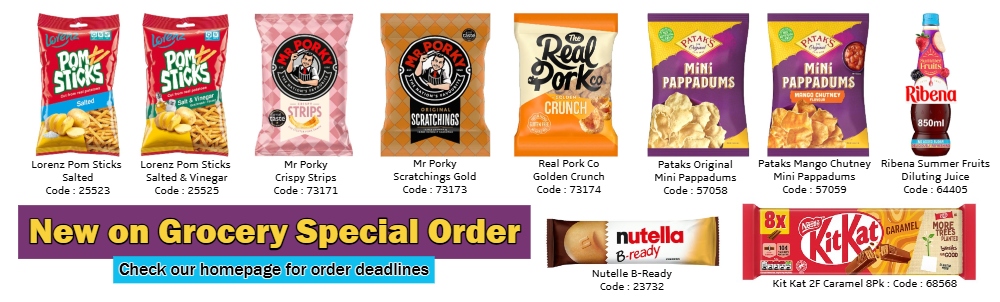 Please Order Grocery Special Orders, Brakes and Pre Order Chill Items separately where possible, Thank you.